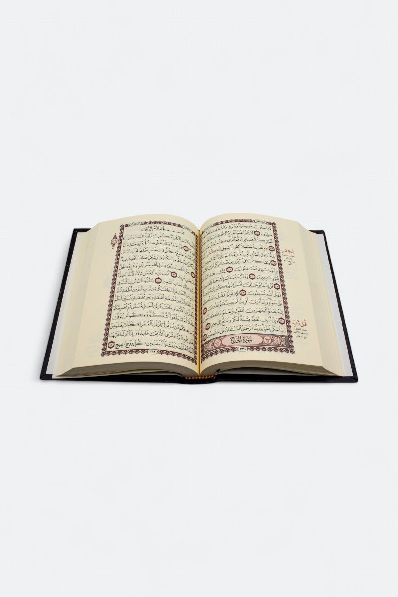 Quran Shoba from Asem Narration 17 x 24 cm مصحف برواية شعبة عن عاصم 17×24 القرآن الكريم برواية شعبة عن عاصم من طريق الشاطبية، هو إصدار قرآني يعرض النص الكريم وفق رواية شعبة بن عياش عن عاصم بن أبي النجود. تُعد رواية شعبة واحدة من الروايتين المتواترتين عن الإمام عاصم، حيث أن الرواية الأخرى عن عاصم هي رواية حفص، التي تُعد الأكثر انتشارًا. رواية شعبة تتميز ببعض الاختلافات في نطق الكلمات أو أحكام التجويد بالمقارنة مع رواية حفص، وهذه الاختلافات تضيف إلى غنى وتنوع القراءات القرآنية. الشاطبية هي متن شهير في علم القراءات، جمع فيه الإمام الشاطبي القراءات السبع التي منها قراءة عاصم برواية شعبة، وهي من أهم مصادر علم القراءات. هذا المصحف بالرسم العثماني يتيح للمقرئين وطلاب علم القراءات فرصة دراسة رواية شعبة عن عاصم وفق قواعد وأحكام التجويد الدقيقة، ويعزز فهم الفروقات الدقيقة في هذه الرواية مقارنة بالروايات الأخرى. يعد هذا الإصدار مثاليًا للقراء الراغبين في تنويع تلاواتهم ودراسة القراءات القرآنية المتعددة، مع الحفاظ على الدقة في الأداء والتلاوة.