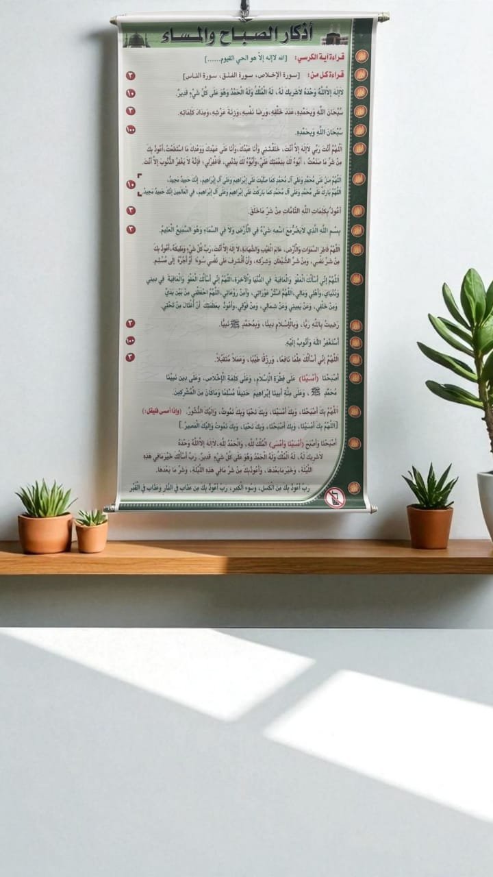 بوستر اذكار الصباح والمساء Morning and Evening Remembrance يشتمل علي اذكار الصباح والمساء ويتوفر ب 2 مقاس مميز لجميع الاماكن Poster – Morning and Evening Remembrance. Size: 100 cm Height x 50 cm Width (Medium Size) Size: 30 cm Height x 60 cm Width (Small Size)