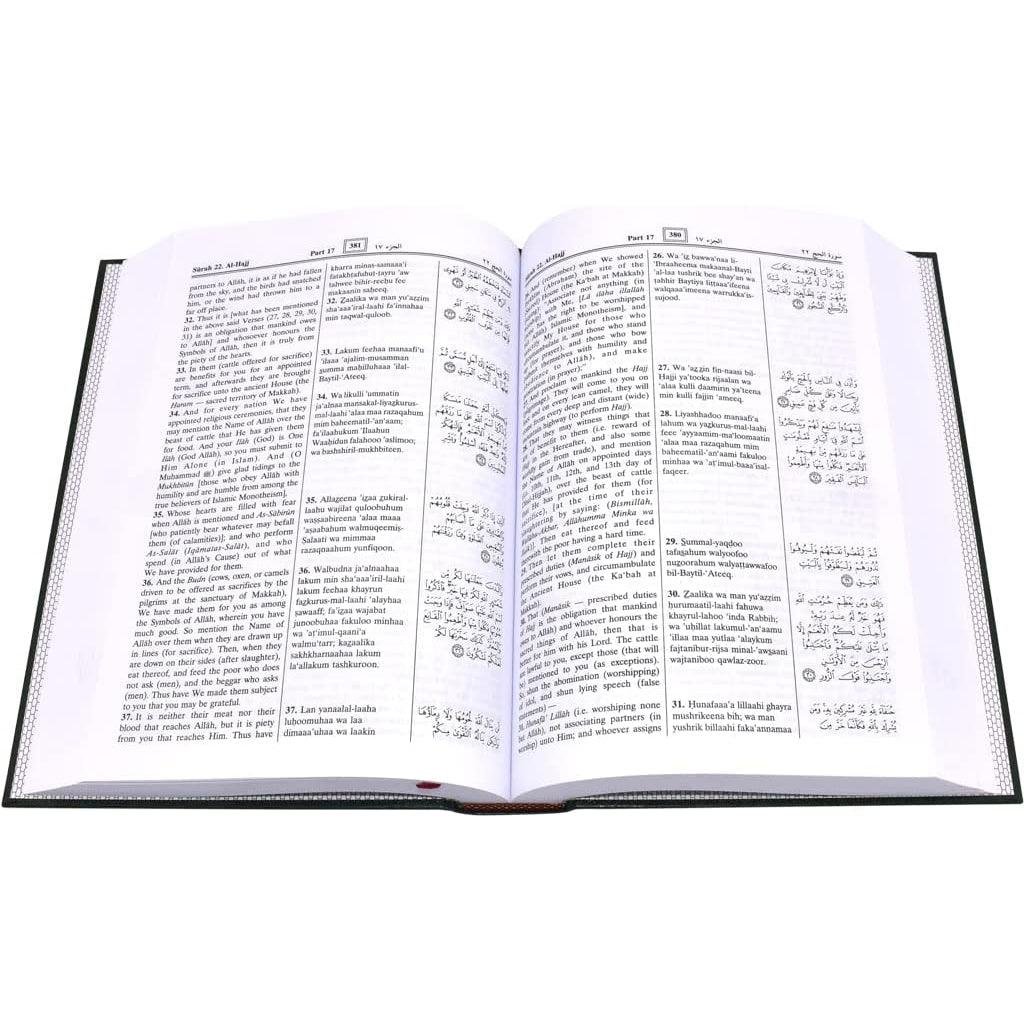 لقراءة النص العربي للآيات القرآنية بشكلها الصحيح هو من الأهمية بمكان لكل مسلم، حيث تتغير معاني الكلمات العربية بتغييرات طفيفة في علامات التشكيل. ولذلك، لمساعدة القراء والمقرئين الذين ليسوا على دراية باللغة العربية أو لا يستطيعون قراءة العربية، أعدت دار السلام هذه الطبعة من القرآن الكريم مع إدراج الترجمة الصوتية للآيات الكريمة مع ترجمتها. تم تعديل هذا التفسير لمعاني القرآن الكريم وأجريت عليه التغييرات التالية: ١. وُضعت كل آية على حدة مع تفسيرها الإنجليزي. 2. أُخذ النص العربي للقرآن الكريم من مصحف المدينة النبوية الذي طبعه مجمع الملك فهد بن عبد العزيز آل سعود لطباعة المصحف الشريف في عام 1405 هـ، بناءً على توجيهات نائب رئيس الجامعة الإسلامية، وذلك بدلاً من النص العربي القديم للطبعة السابقة لهذا الكتاب التي طبعت في الولايات المتحدة وتركيا، على يد الخطاط التركي الشيخ حامد الآمدي. 3. هناك بعض الإضافات والحذف للسور والأحاديث من صحيح البخاري ومجموعات أحاديث أخرى. 4. أُجريت بعض الإضافات والتصحيحات والتعديلات لتحسين الترجمة الإنجليزية وجعل التفسير الإنجليزي أقرب ما يكون إلى المعاني الصحيحة والدقيقة للنص العربي. 5.تمت إضافة عمود آخر في هذه الطبعة الخاصة من تفسير معاني القرآن الكريم، مما يوفر للقراء الترجمة الحرفية للآيات العربية مع ترجمتها. نأمل أن يتمكن القراء من تلاوة الآيات الكريمة بشكل أصح من خلال الاستعانة بالترجمة الصوتية. المترجمون: د. محمد تاج الدين الحلة د. محمد محسن خان ٠ بكسل؛ لون الخلفية: #ffffff؛ سُمك زخرفة النص: أولي؛ نمط زخرفة النص: أولي؛ لون زخرفة النص: أولي؛”>المترجمون: د. محمد تاج الدين الحلة د. محمد محسن خان ٠ بكسل؛ لون الخلفية: #ffffff؛ سُمك زخرفة النص: أولي؛ نمط زخرفة النص: أولي؛ لون زخرفة النص: أولي؛”>المترجمون: د. محمد تاج الدين الحلة د. محمد محسن خان
