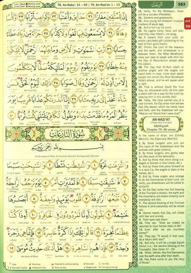 ترجمة معاني القرآن الكريم كلمة بكلمة مع التجويد الملون عربي-إنجليزي