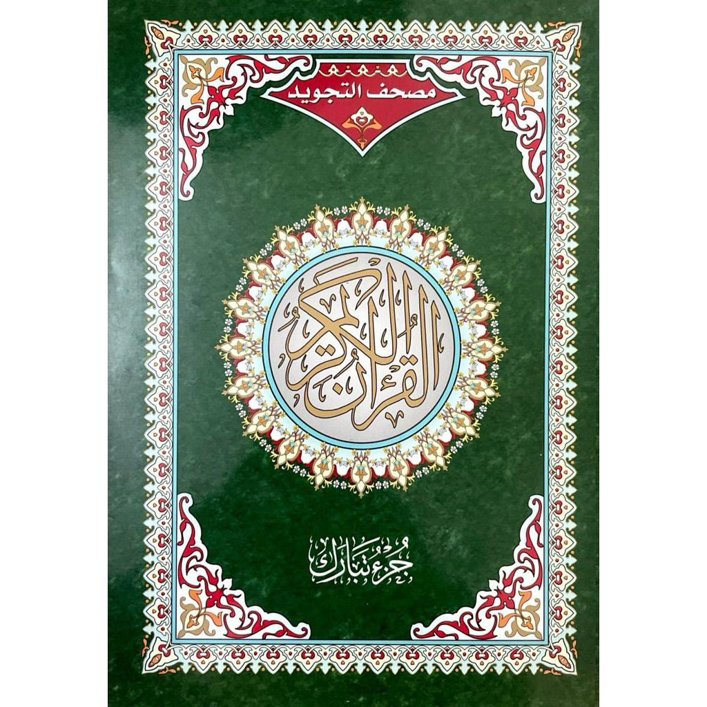 Juza’ Tabark Part 29 of Quran Tajweed Size 17×24 cm جزء تبارك تجويد مقاس 17×24 سم هذا الجزء من مصحف التجويد موجود برواية حفص الحروف الملونة: لعرض قواعد التجويد ، طريقة جيدة جداً وبسيطة لتعلم وتطبيق قواعد التجويد الخط الواضح: تم إضافة مسافات بين الكلمات لتسهيل قراءة القرآن وتلاوته.