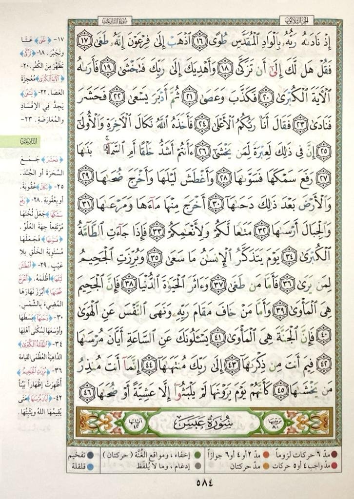 Juza’ Amma Part 30 of Quran Tajweed Size 17×24 cm جزء عم تجويد مقاس 17×24 سم هذا الجزء من مصحف التجويد موجود برواية حفص الحروف الملونة: لعرض قواعد التجويد ، طريقة جيدة جداً وبسيطة لتعلم وتطبيق قواعد التجويد الخط الواضح: تم إضافة مسافات بين الكلمات لتسهيل قراءة القرآن وتلاوته.