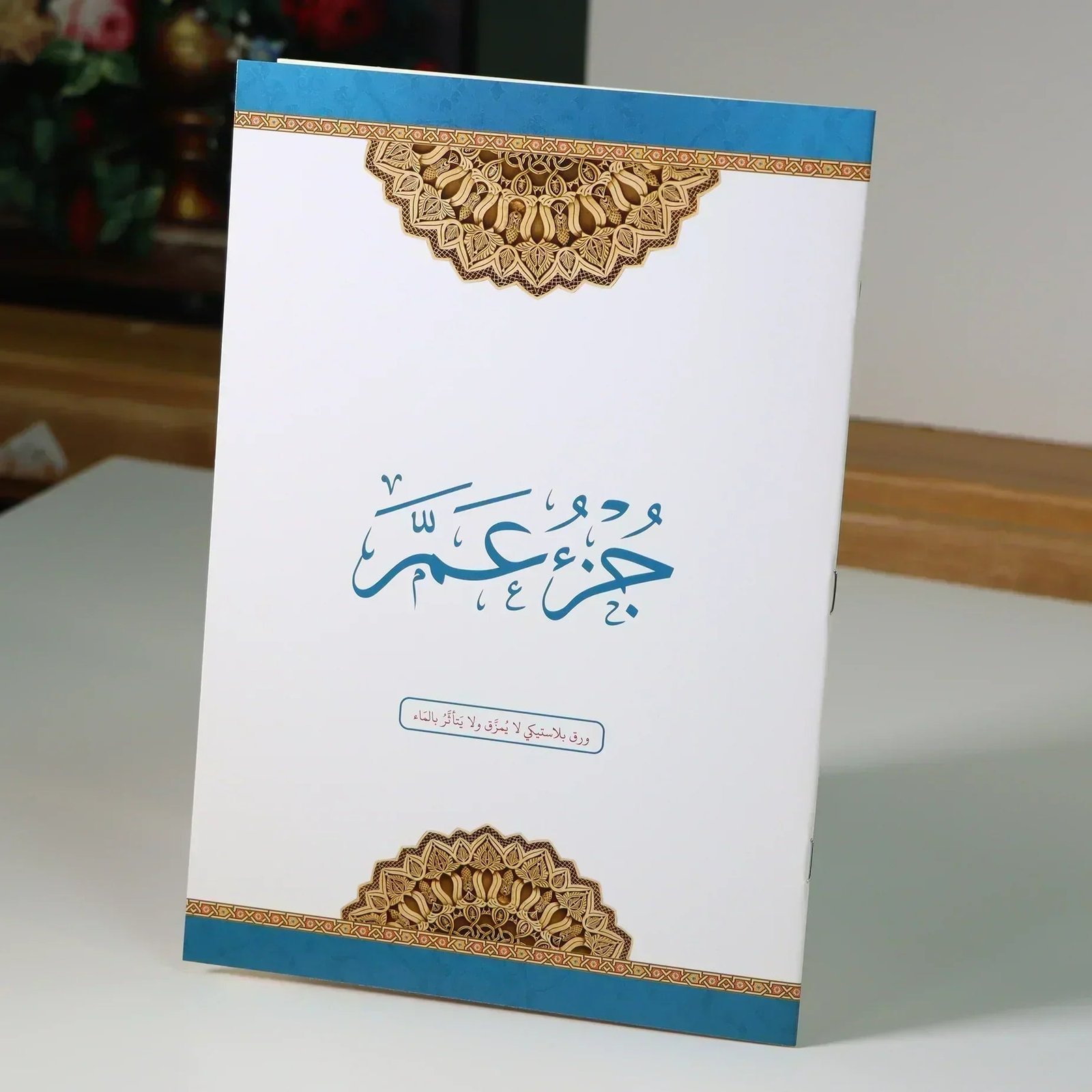 جزء عم مطبوع على ورق بلاستيكي لايتمزق حجم مناسب خط واضح وكبير يتحمل الماء والرطوبة والاستخدام المتكرر مقاس 20*28 سم