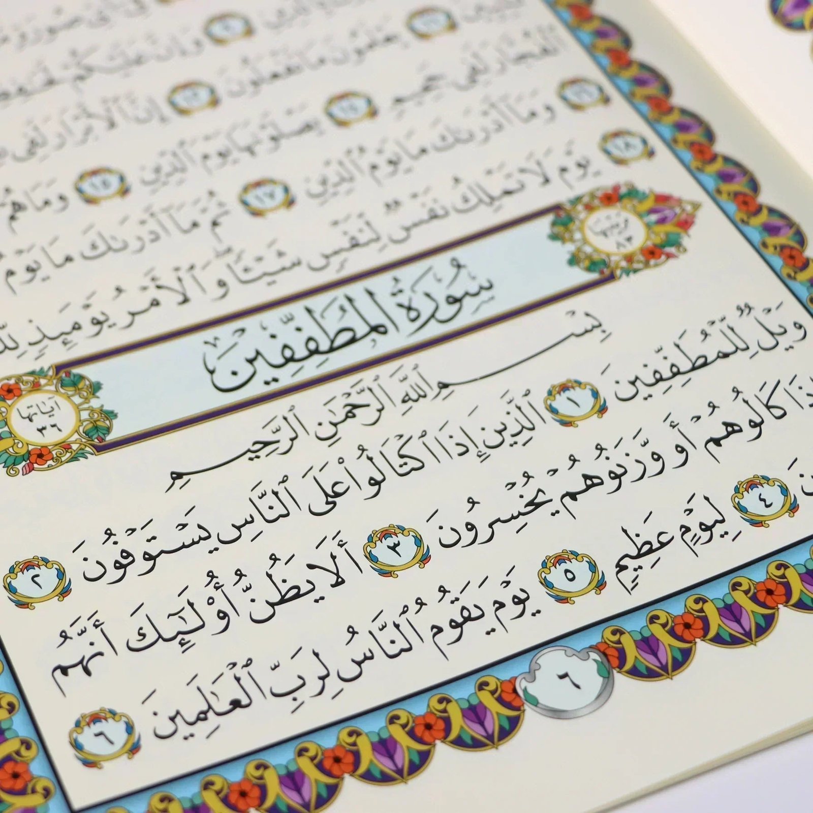 جزء عم مطبوع على ورق بلاستيك لايتمزق مقاس 20*28 سم