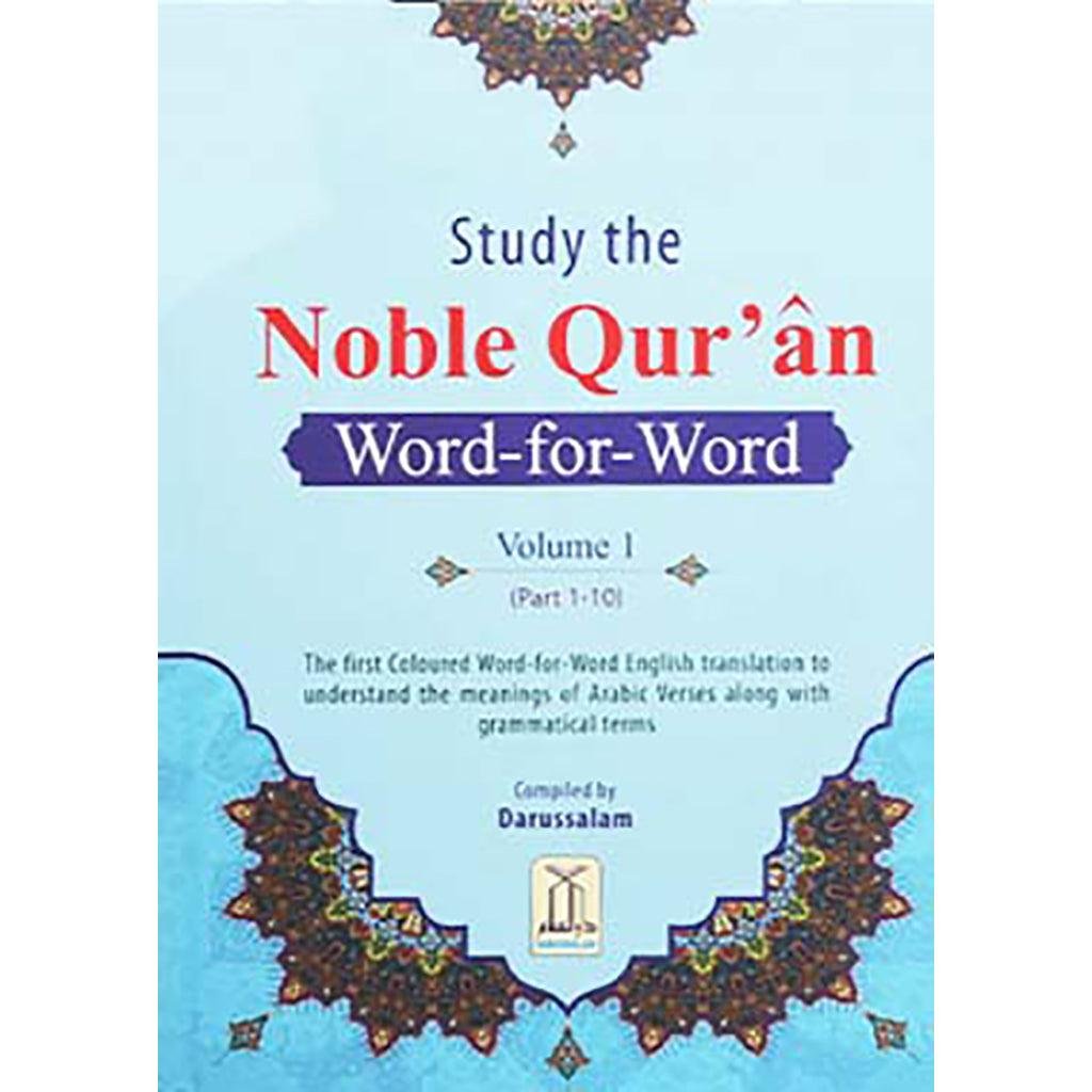 دراسة القرآن الكريم كلمة بكلمة، المجلد 1/3 دراسة القرآن الكريم كلمة بكلمة، مجموعة المجلدات الثلاثة، نسخة ملونة، إعداد: دار السلام، ترجمة: د. محمد تقي الدين الهلالي ود. محمد محسن خان. لأول مرة، تُترجم كلمة بكلمة إلى الإنجليزية لزيادة الوعي بالآيات العربية. لفهم القرآن الكريم، من الضروري معرفة ترجمة كل كلمة في الآية. لذلك، ولإيصال المعنى الدقيق للآيات القرآنية للناس، تُنتج ترجمة حرفية لمعاني القرآن الكريم. وبما أن الترجمة الحرفية في حد ذاتها لا تؤدي إلى الفهم الكامل، فإن الترجمة الاصطلاحية يتم إنتاجها أيضًا على نفس الصفحة لتسهيل الوعي الكامل.