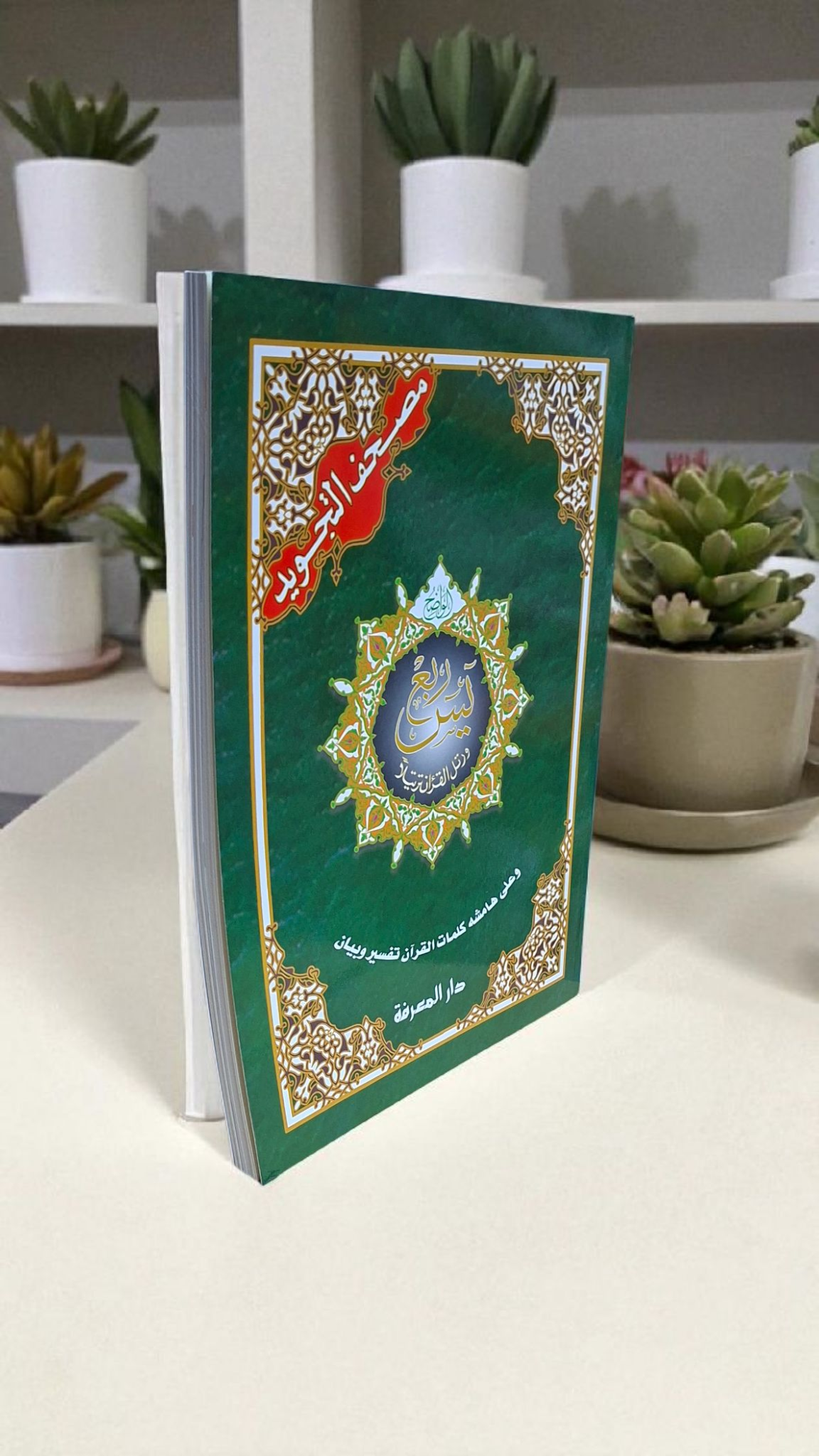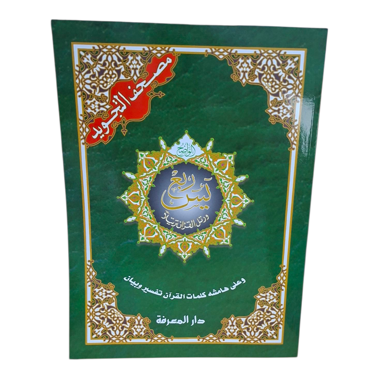 Last 7 Parts of Quran From Yassin to the End Tajweed size 25×35 cm ربع يس تجويد مقاس 35×25 سم هذا الجزء من مصحف التجويد موجود برواية حفص الحروف الملونة: لعرض قواعد التجويد ، طريقة جيدة جداً وبسيطة لتعلم وتطبيق قواعد التجويد الخط الواضح: تم إضافة مسافات بين الكلمات لتسهيل قراءة القرآن وتلاوته. الوقفات المسموحة: تم إضافة مسافات طويلة في الأماكن التي يجوز التوقف فيها. يساعد على تجنب التوقف في الأماكن أو الأوقات الخاطئة. مجموعة من الفهارس المفيدة جداً مثل: فهرس ألوان السور ، فهرس الموضوع. شرح قواعد التجويد بالتفصيل مع توضيح مفيد.