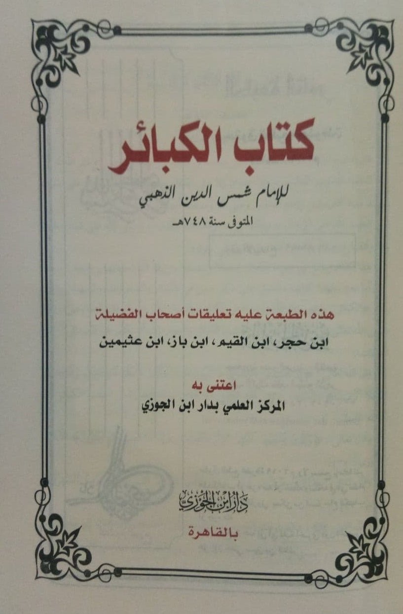 كتاب الكبائر هو للحافظ العالم العلامة الإمام الذهبي ، جمع فيه أصنافاً من الكبائر ، وحتى تعظم فائدة الكتاب وخاصة لأنه واسع الإنتشار