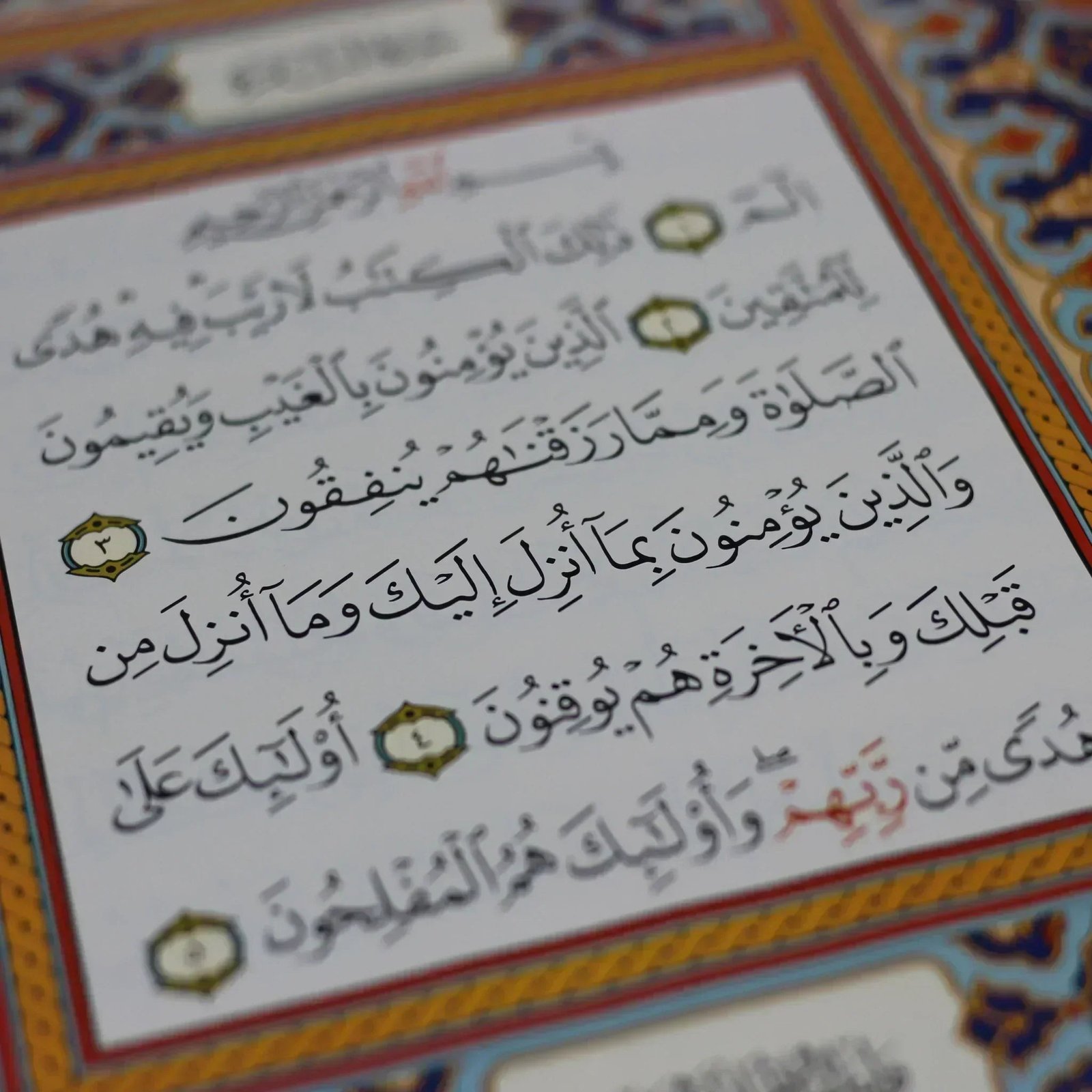 سورة البقرة مع فضائلها وأذكار الصباح والمساء بالغلاف العادي واوراق ملونة الاطراف مقاس 8*12 سم مناسب لتوزيعات شهر رمضان المبارك