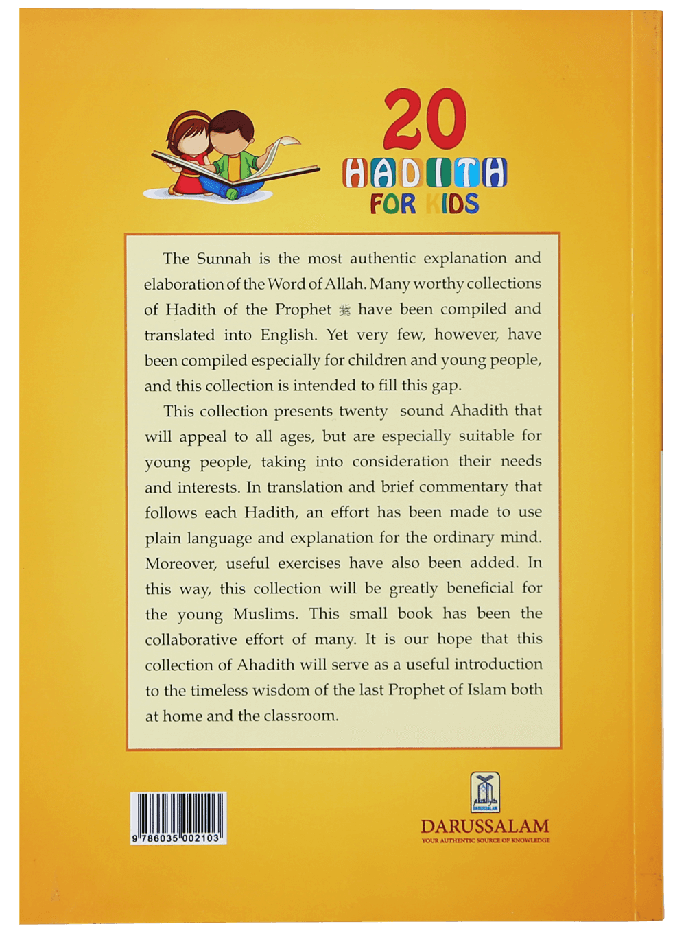 عشرون حديثًا للأطفال السنة النبوية هي أصح تفسير وشرح لكلمة الله. جُمعت وترجمت إلى الإنجليزية العديد من الأحاديث النبوية الشريفة. ومع ذلك، لم يُجمع منها إلا القليل خصيصًا للأطفال والشباب، وهذه المجموعة تهدف إلى سدّ هذه الفجوة. تقدم هذه المجموعة عشرين حديثًا صحيحًا تناسب جميع الأعمار، ولكنها مناسبة بشكل خاص للشباب، مع مراعاة احتياجاتهم واهتماماتهم. في الترجمة والتعليق الموجز الذي يلي كل حديث، بُذل جهدٌ لاستخدام لغة وشرح بسيطين للعقل العادي. علاوة على ذلك، أُضيفت تمارين مفيدة. وبهذه الطريقة، ستكون هذه المجموعة مفيدة جدًا للشباب المسلم. هذا الكتاب الصغير هو ثمرة جهد مشترك للكثيرين. إننا نأمل أن تكون هذه المجموعة من الأحاديث بمثابة مقدمة مفيدة للحكمة الخالدة التي ورثها آخر نبي من أنبياء الإسلام، سواء في المنزل أو في الفصول الدراسية.