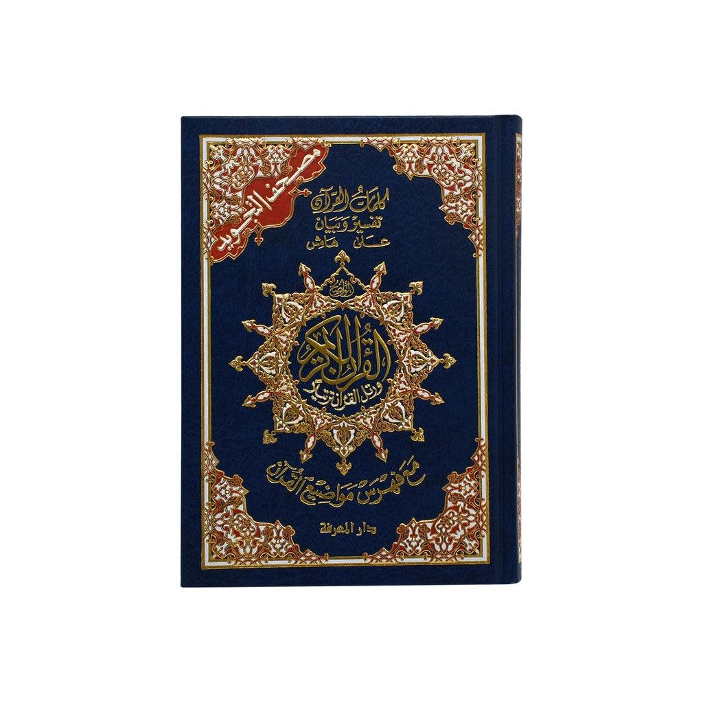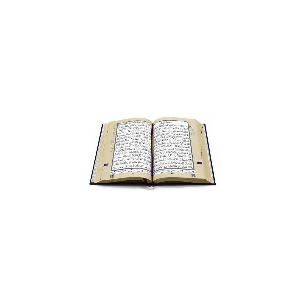 Tajweed Quran hard cover Assorted Cover Colors 20×14 مصحف التجويد مقاس يأتي القران بالوان غلاف متنوعة هذا القرآن التجويدى فى رواية حفص. يأتي هذا القرآن بما يلي: الحروف المشفرة بالألوان: لتقديم قواعد التجويد ، طريقة جيدة جدًا وبسيطة لتعلم وتطبيق قواعد التجويد. نص واضح: تمت إضافة مسافات إضافية بين الكلمات لتسهيل قراءة القرآن وتلاوته. الوقفات المسموحة: تم إضافة مسافات طويلة في أماكن معينة يجوز التوقف فيها. يساعد على تجنب التوقف في الأماكن أو الأوقات الخاطئة. مجموعة من الفهارس المفيدة جدًا مثل: فهرس ألوان السور ، فهرس الموضوع. شرح قواعد التجويد بالتفصيل مع توضيح مفيد