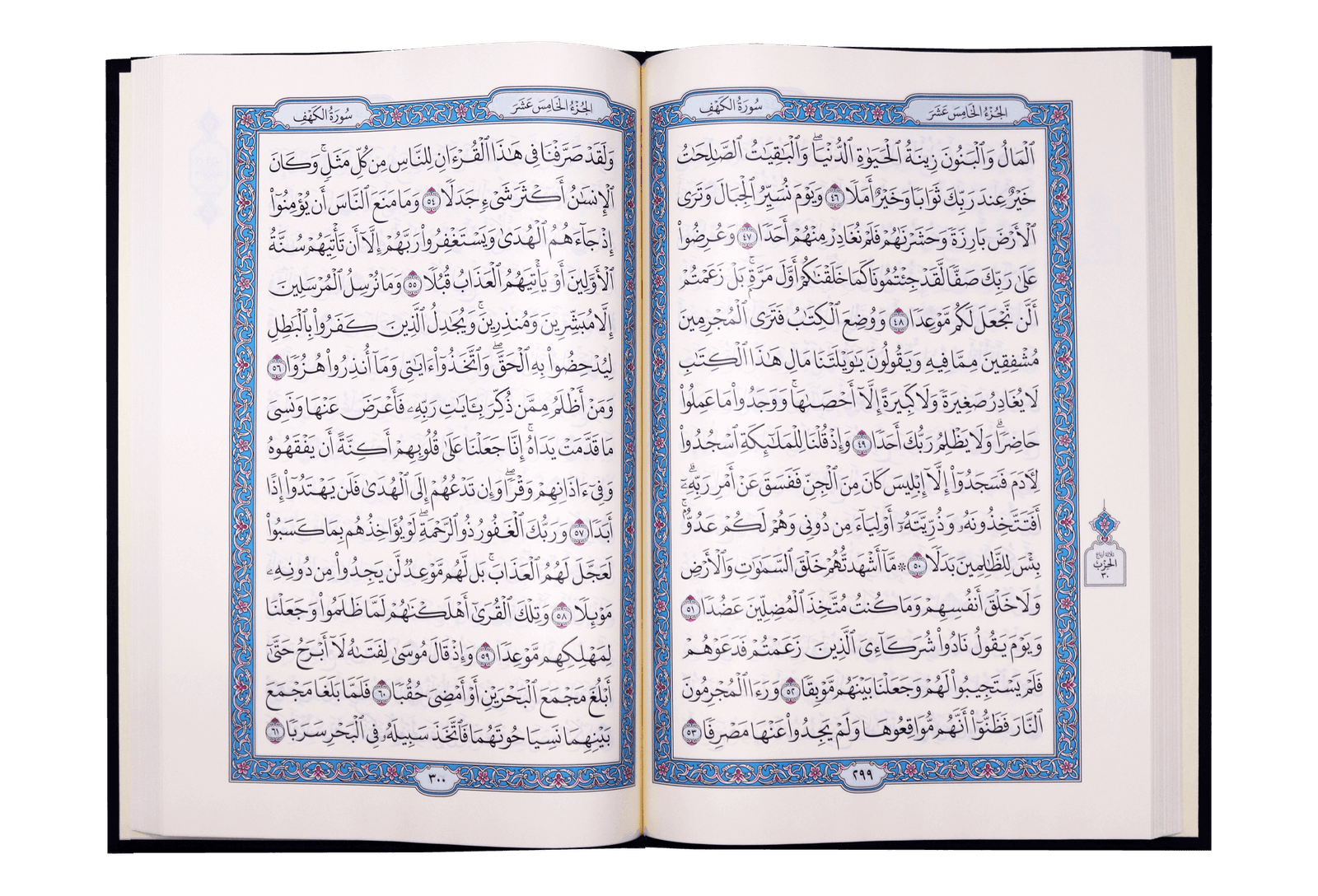 Mushaf Madinah Large – Arabic Script – مصحف مجمع الملك فهد المدينة مقاس جوامعي Size : 20×28 cm big size Large size Mushaf in Arabic Font, printed by Majamma Malik Fahad and found in Haram Makkah, Madinah, and many Masaajid around the world. Good for old age People as it has the bold and large font. Easy to read. Deluxe hardbound with fine paper and Blue background. This Quran’s in the finest papers, and it’s amazing on the eyes. No other print comes close to its printing quality.