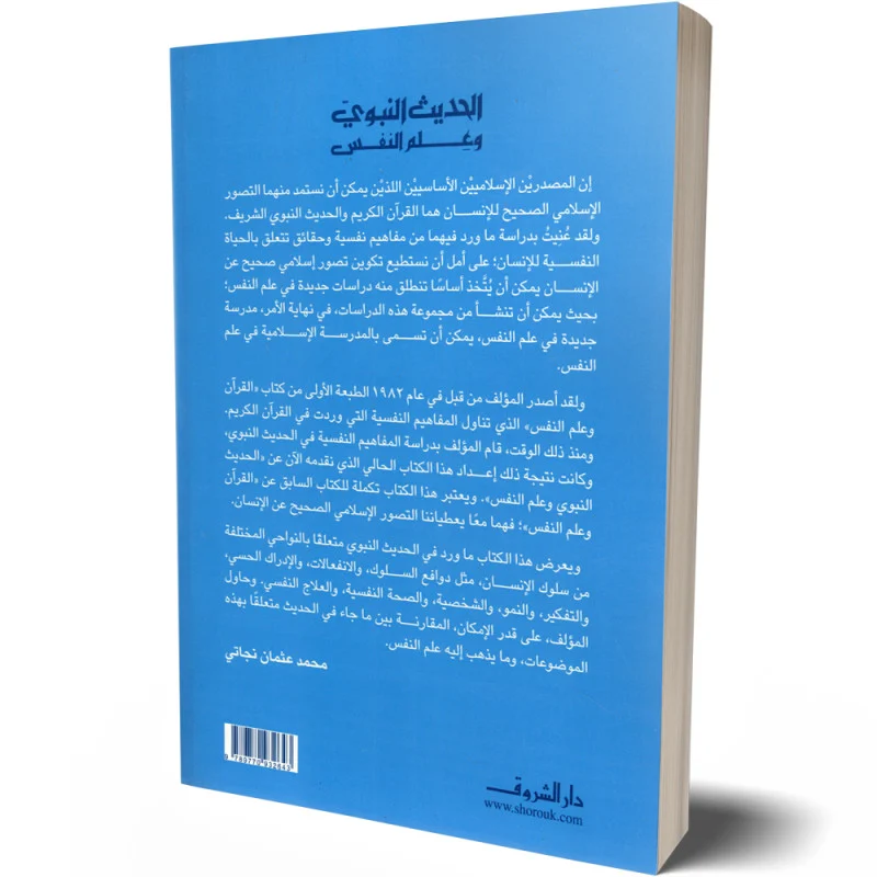 يتناول ما ورد فى الحديث النبوى الشريف باعتباره العمود الثانى للتشريع فى الدين الإسلامى الصحيح من مفاهيم نفسية وحقائق تتعلق بالحياة النفسية للإنسان متناولاً دوافع السلوك البشرى فى الحديث النبوى والاتفاعلات البشرية فى الحديث النبوى وكيفية تناوله لكلاهما. وكذا كيف تناول الحديث الشريف التعلم والتفكير والعلم اللدنى والنمو والشخصية والصحة النفسية وأخيراً العلاج النفسى فى الحديث النبوى الشريف