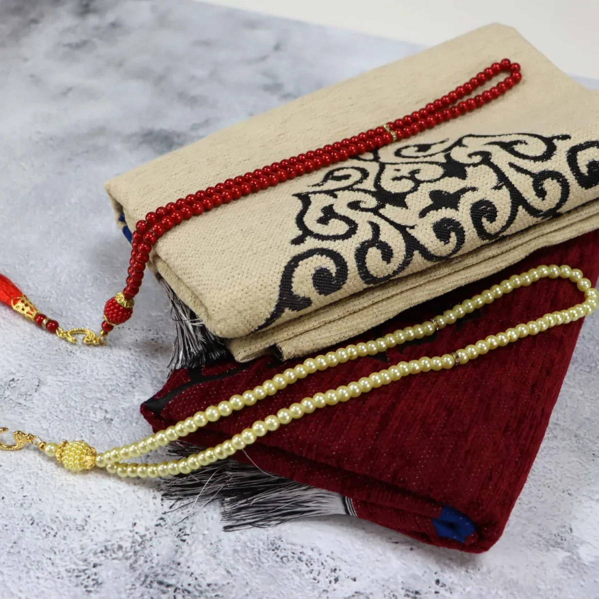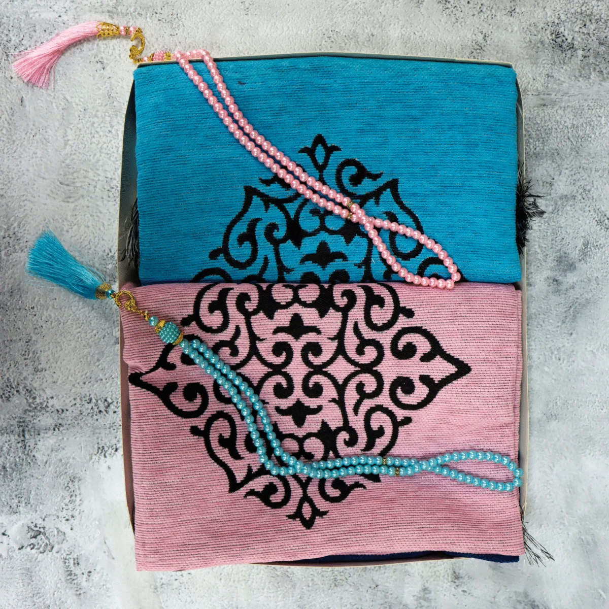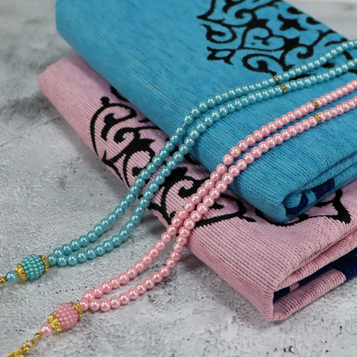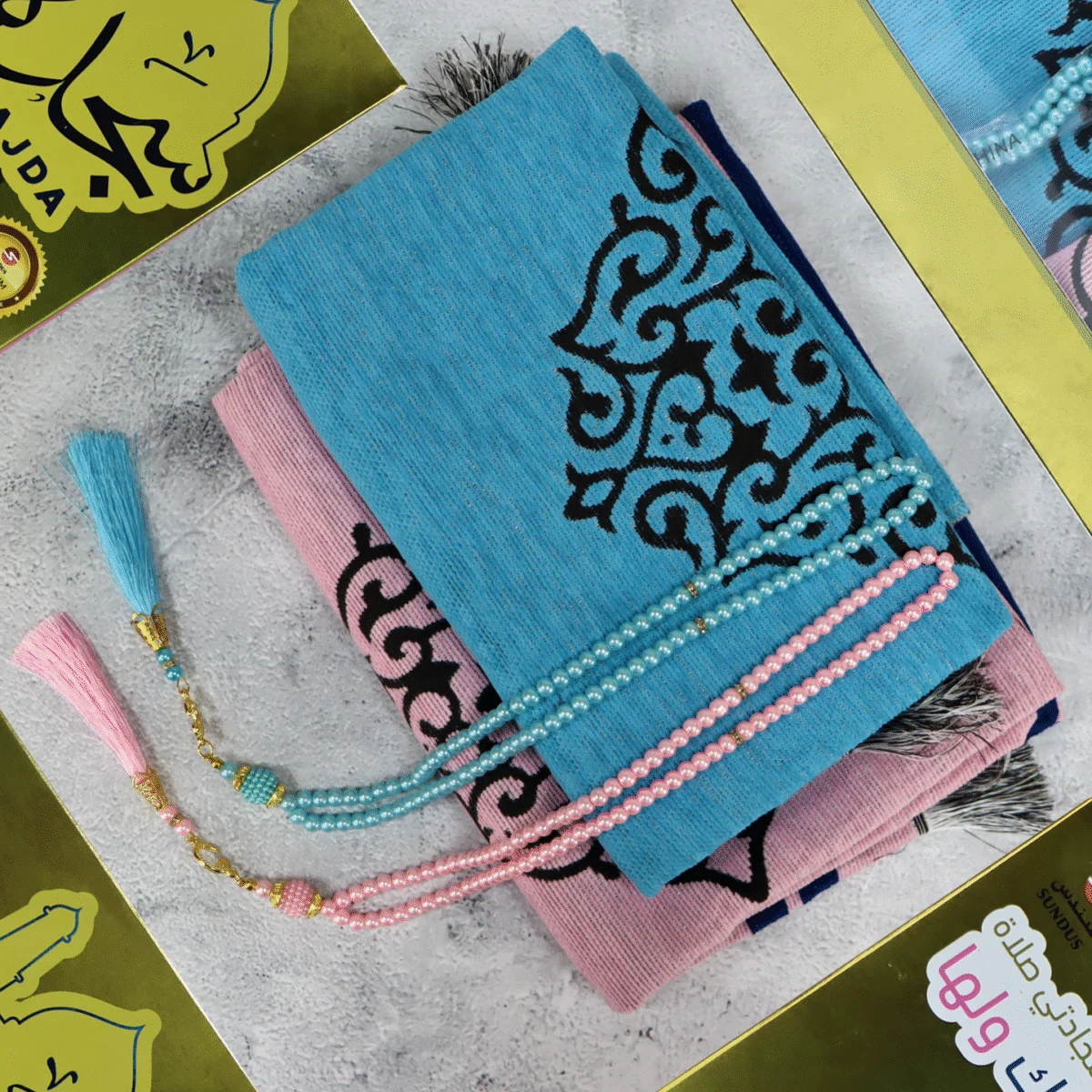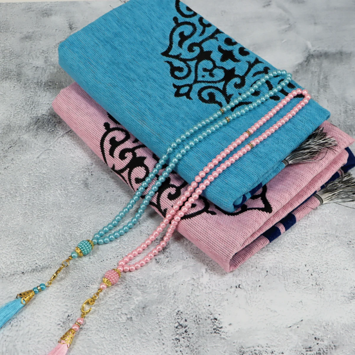 سجادة صلاة مزدوجة – تصميم أنيق للزوجين بألوان متناسقة وجذابة