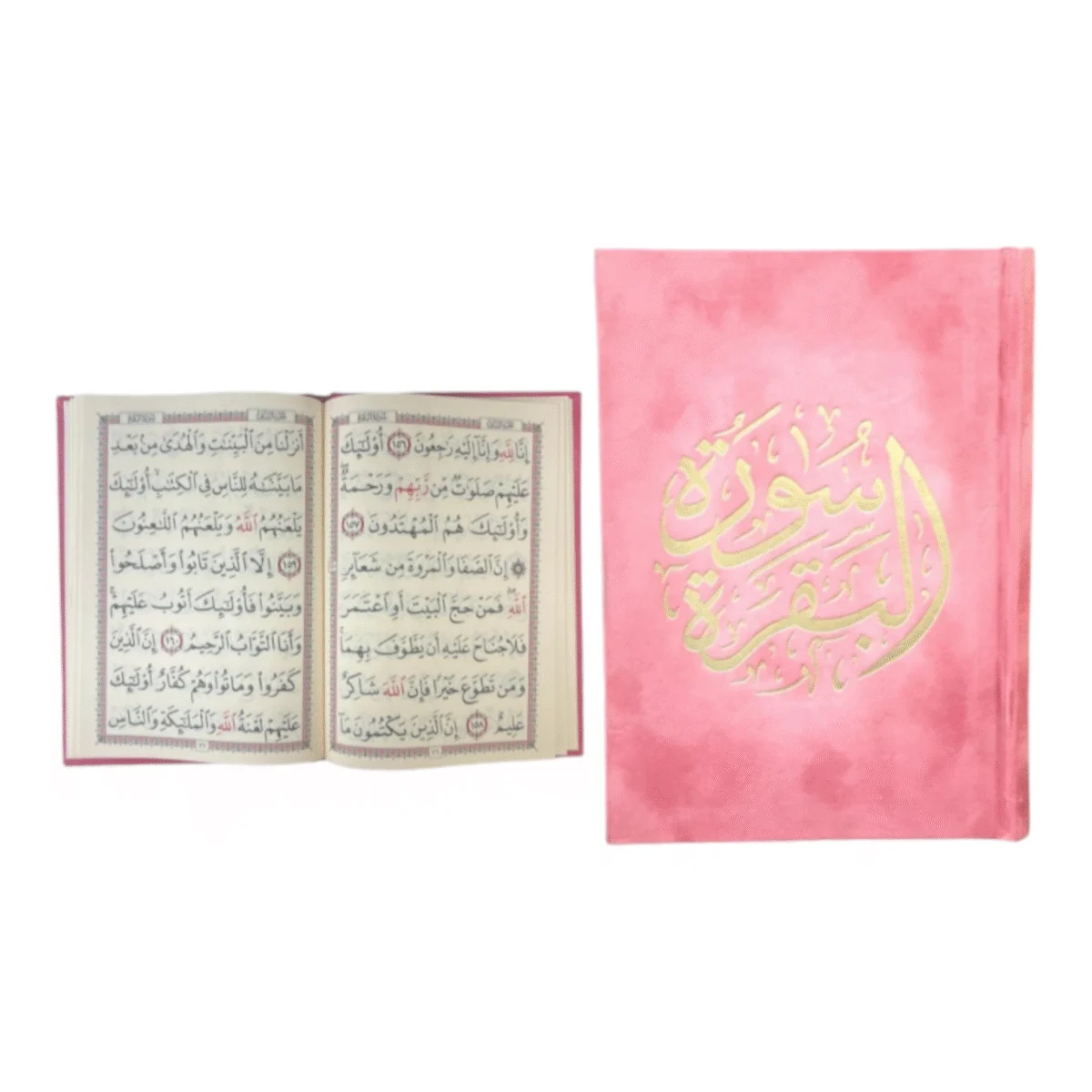 كرتون 36 نسخة سورة البقرة – غلاف مخمل فاخر مقاس 12×17 سم ألوان متعددة