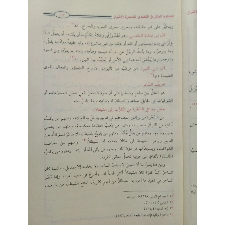 وترك العبادات من الصلاة والذكر التي هي الحصن الحصين الذي علمنا الله . وهذا الكتاب يعرف السحر ويبين معناه