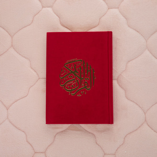 القرآن الكريم بغلاف مخمل ملون | حجم متوسط مثالي للتلاوة اليومية – 14×20 سم