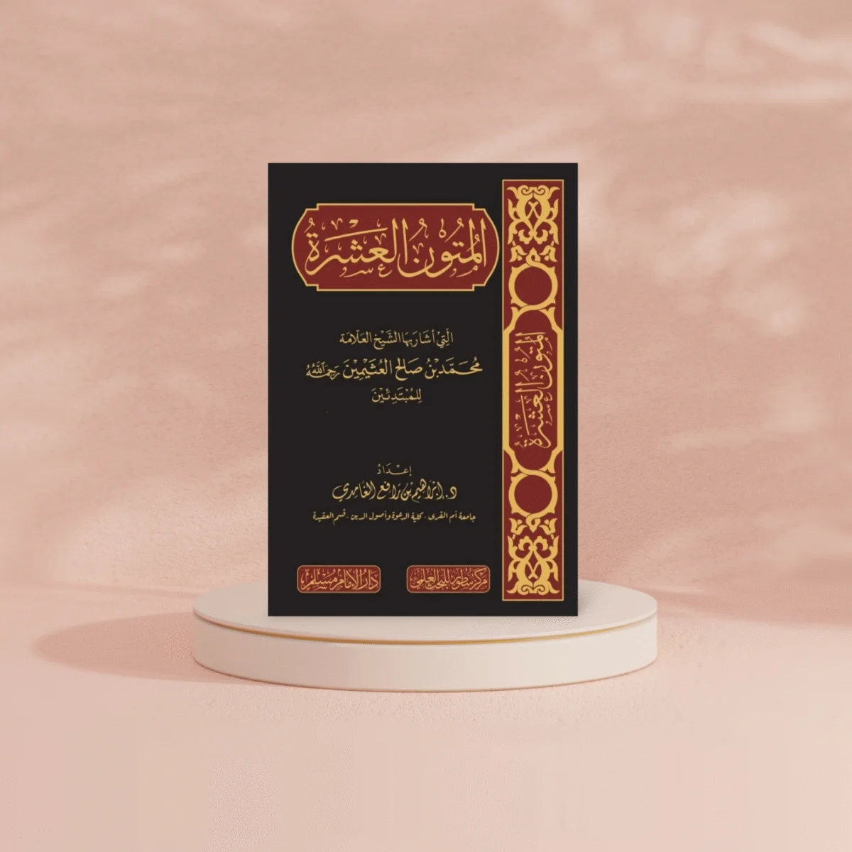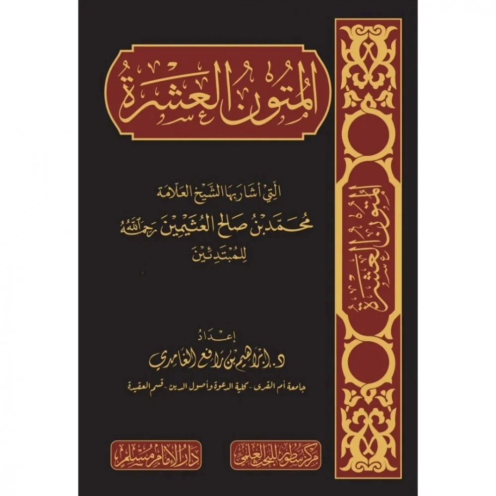 هذه عشرة متون في شتى فنون العلم، وكما هو معلوم أن من حفظ المتون حاز الفنون، وبحفظها يستطيع طالب العلم أن يلج في بحار العلوم ليلتقط اللآلئ واليواقيت والمرجان . والمتون هي: التي أشار بها العلامة محمد بن صالح العثيمين رحمه الله : ١ – متن العمدة في الاحكام لمؤلفه الامام الحافظ عبد الغني بن عبد الواحد المقدسي . ٢ – متن الاصول الثلاثة وأدلتها تأليف شيخ الاسلام الامام محمد بن عبد الوهاب . ٣ – متن كشف الشبهات ، تأليف شيخ الاسلام الامام محمد بن عبد الوهاب . ٤ – متن كتاب التوحيد الذي هو حق الله على العبيد، تأليف محمد بن عبد الوهاب . ٥ – متن العقيدة الواسطية ، تأليف شيخ الاسلام الامام ابي العباس ابن تيمية . ٦ – متن زاد المستقنع في اختصار المقنع لمؤلفه الشيخ شرف الدين ابي النجا . ٧ – متن الورقات في اصول الفقه ، تأليف امام الحرمين ابي المعالي الجويني . ٨ – متن نخبة الفكر في مصطلح اهل الاثر ، تأليف الامام الحافظ ابن حجر العسقلاني . ٩ – متن القلائد البرهانية في المسائل الفرضية ، محمد بن حجازي بن محمد الحلبي الشافعي . ١٠ – متن الأجرومية ، تأليف الإمام العامل بحر العلوم ابو عبد الله محمد بن محمد بن آجروم الصنهاجي