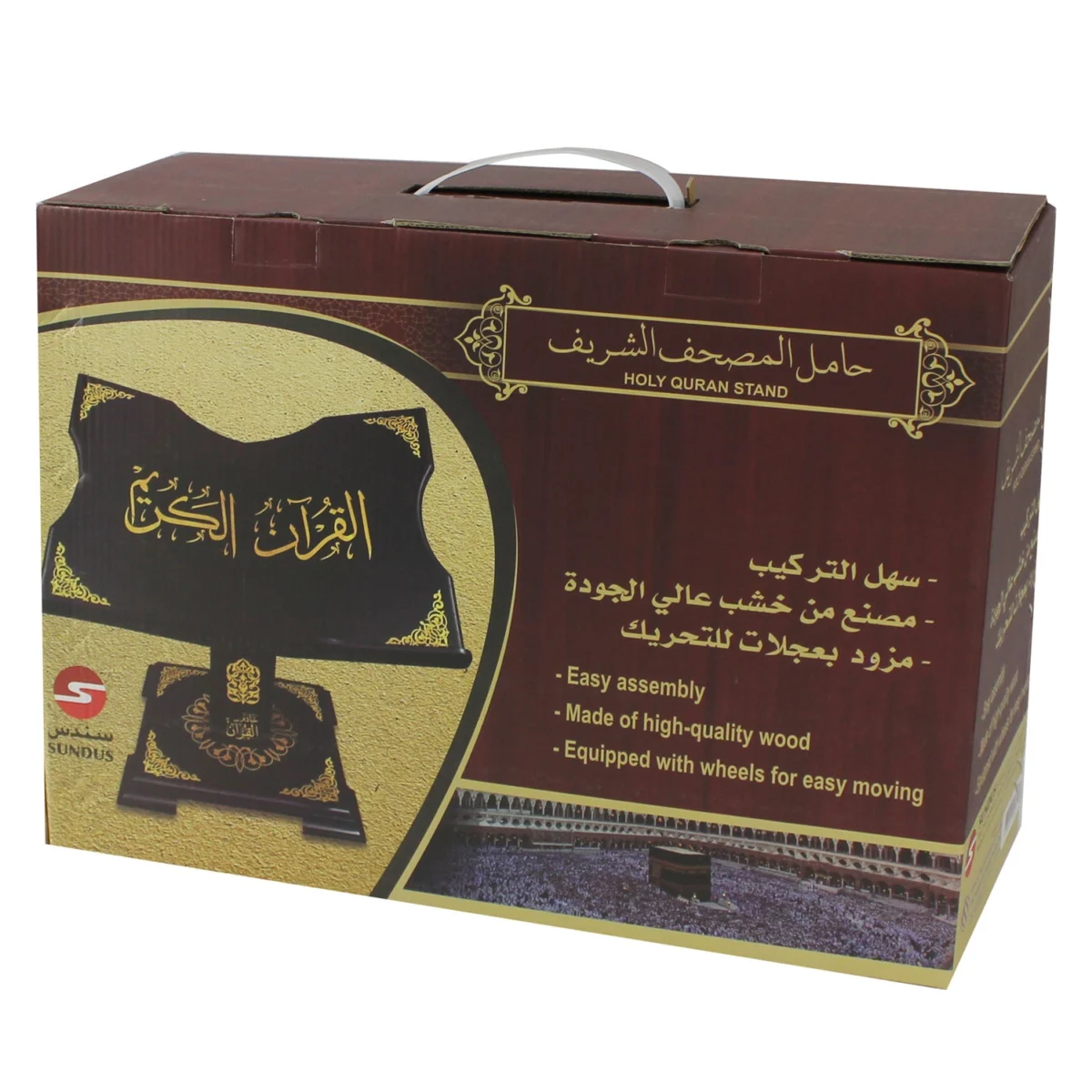 صُمّم **حامل القرآن الكريم مع نقوش إسلامية** خصيصًا لتوفير الراحة أثناء التلاوة في وضعية الجلوس على الأرض. يتميز بنقوش ذهبية إسلامية جميلة تمنحه مظهرًا أنيقًا، بالإضافة إلى تصميمه العملي الذي يجمع بين المتانة والخفة. مناسب للاستخدام في المنازل أو المساجد، ويمكّن المستخدم من نقله بسهولة بفضل العجلات المزودة.