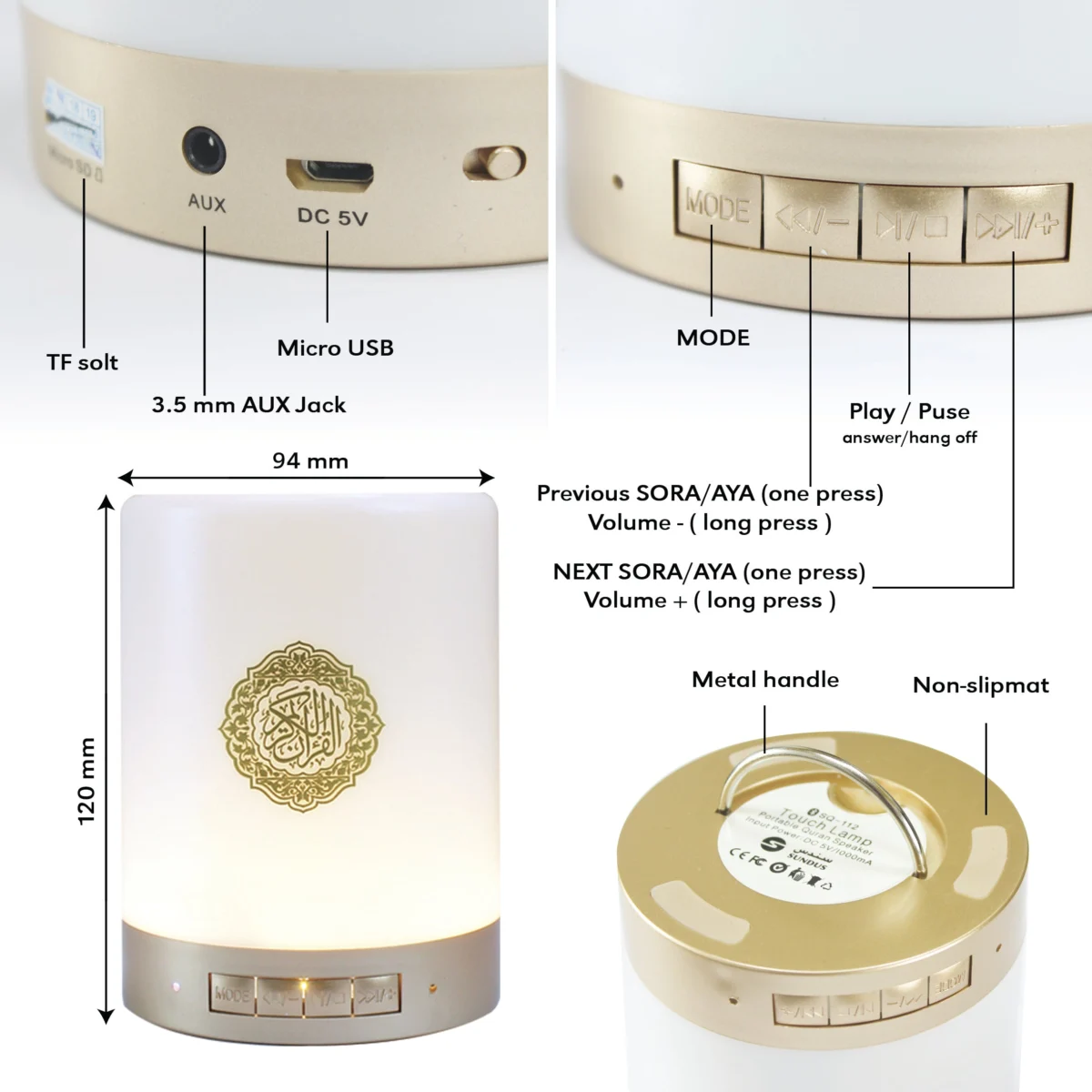 - ذاكرة داخلية مدمجة عليها القران الكريم كاملة جاهزة
