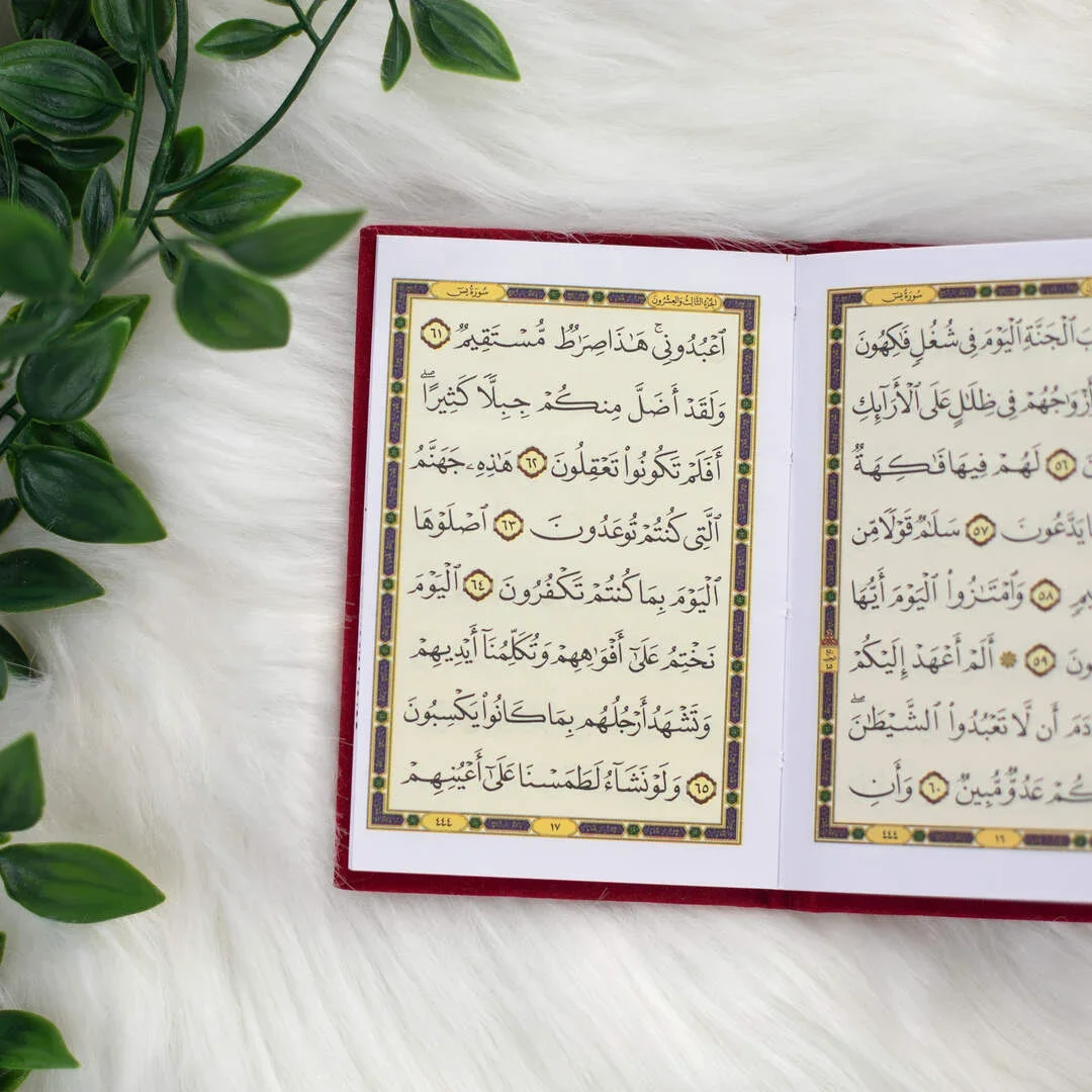 سورة يس بالرسم العثماني بتغليف مخمل فاخر | حجم صغير للاستخدام في أي وقت وأي مكان – 8×12سم