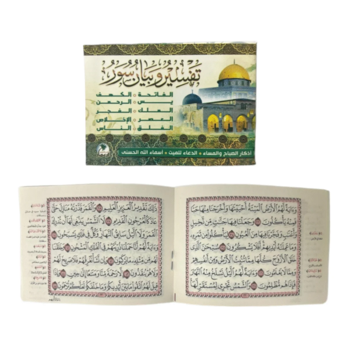 كتيب مصغر يجمع بين فوائد متعددة في مكان واحد. من تفسير السور إلى الأذكار والأدعية، ليصبح مرجعك السريع في جميع أمور العبادة.
