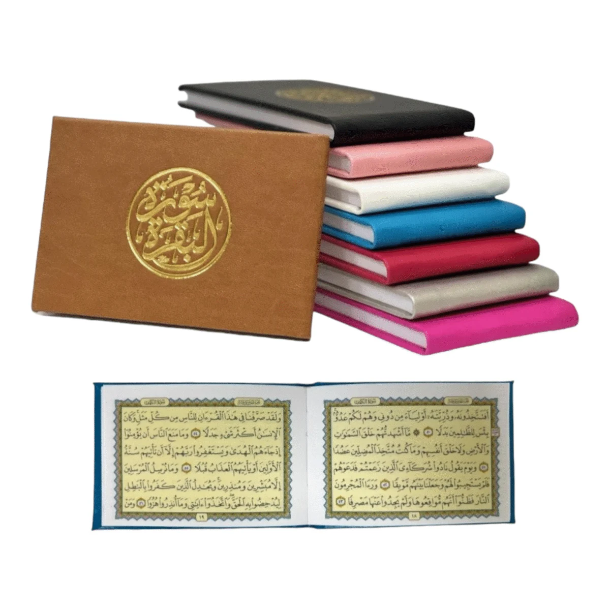 4 reviews for كرتون 50 نسخة سورة البقرة – غلاف جلد بيئي فاخر مقاس 8×12 سم ألوان متعددة