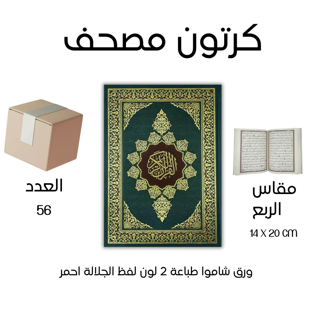 كرتون 56 مصحف للتوزيع الخيري – مقاس الربع 14×20 سم بسعر مميز