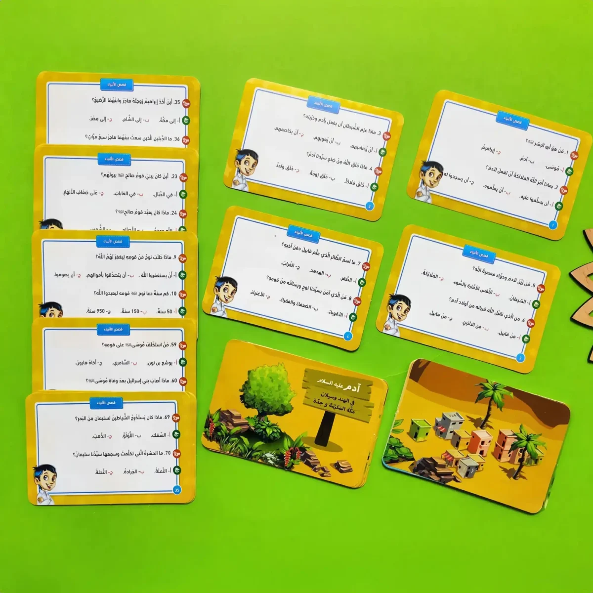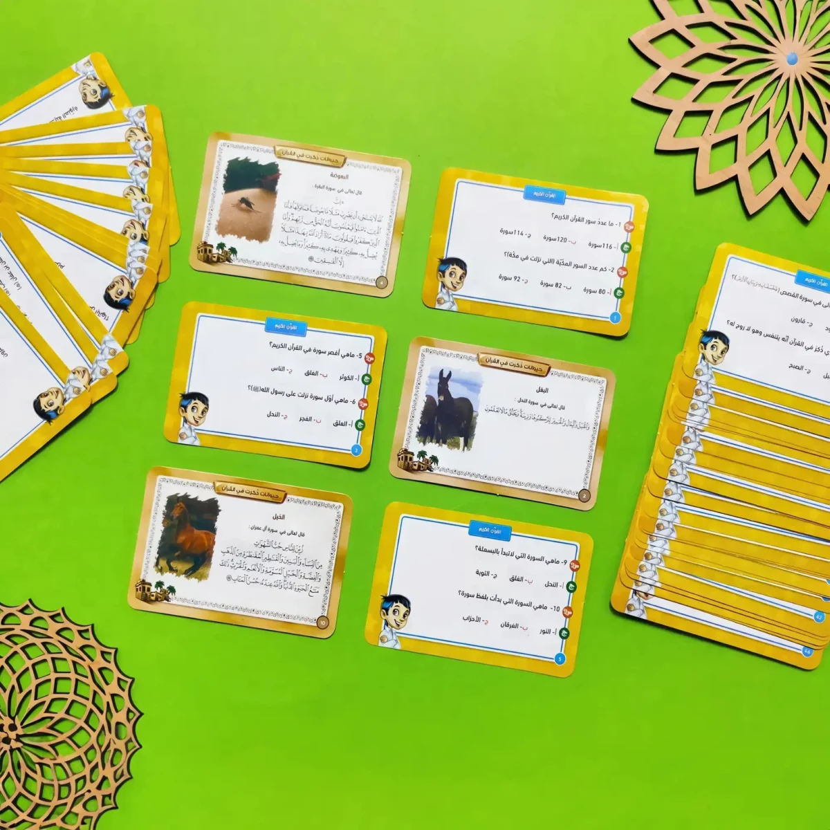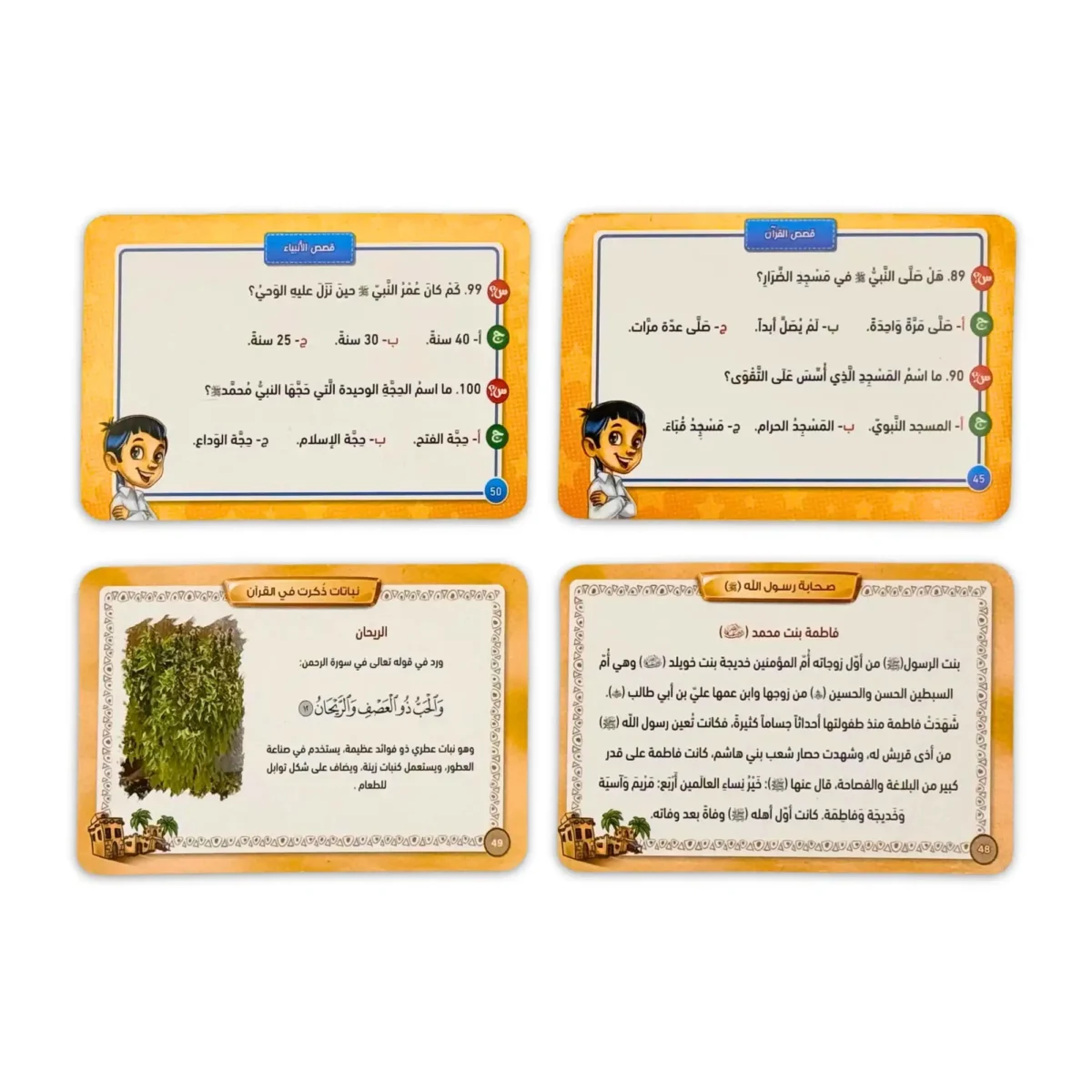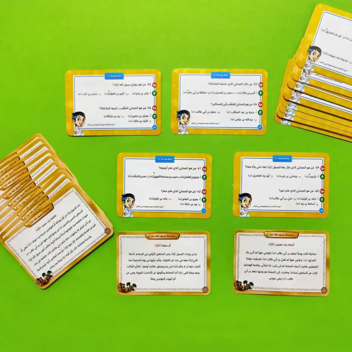 تتألف من ٥٠ بطاقة تتضمن 100 سؤال وجواب، مع معلومات عن الصحابة والصحابيات على الجهة الخلفية لكل بطاقة.