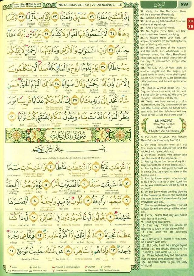 مصحف التجويد الملون كلمة بكلمة – ترجمة عربي إنجليزي مع تلوين الأحكام