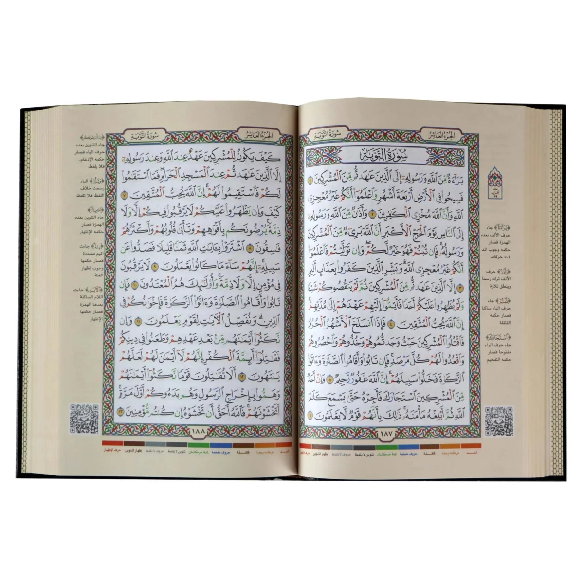 هذا المصحف غير طريقة تلاوتي للقرآن! تفسير الكلمات في الهوامش يوفر علي وقت البحث في المعاجم. الأحكام الملونة ساعدتني في تطبيق التجويد بشكل صحيح. أنصح به كل من يريد تحسين تلاوته.