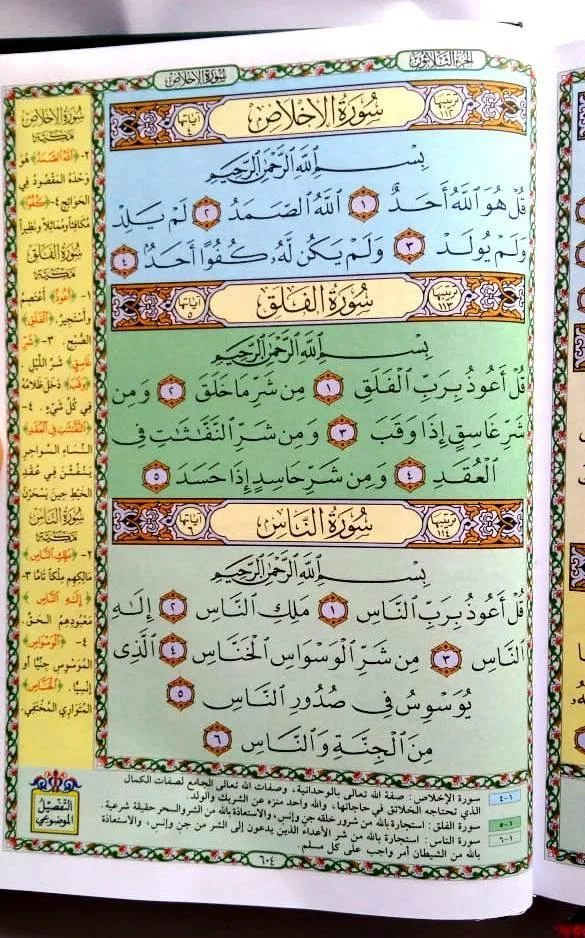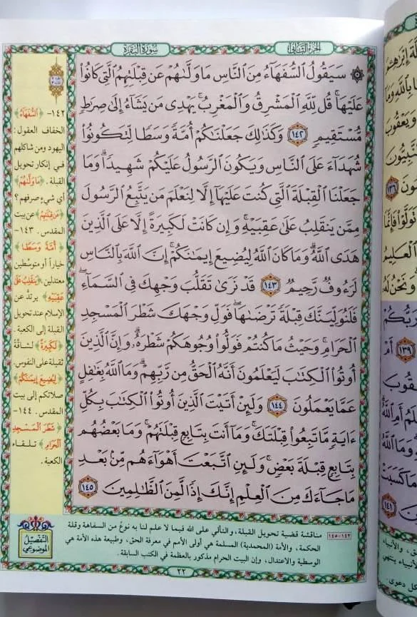 الحجم العملي لهذا المصحف جعله رفيقي الدائم. أحمله في حقيبتي للعمل وأقرأ فيه في أوقات الانتظار. الألوان ساعدتني في تتبع الموضوعات بسهولة. جودة الطباعة ممتازة بالنسبة للسعر.