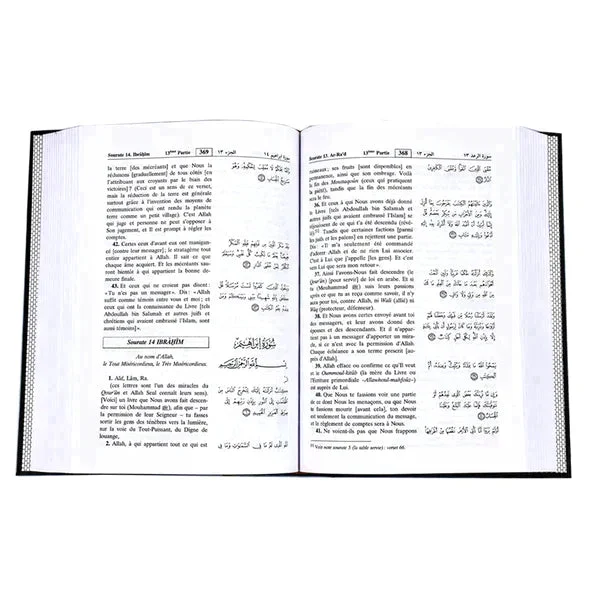مصحف كريم مخصص للناطقين باللغة الفرنسية، يقدم ترجمة دقيقة لمعاني القرآن الكريم.