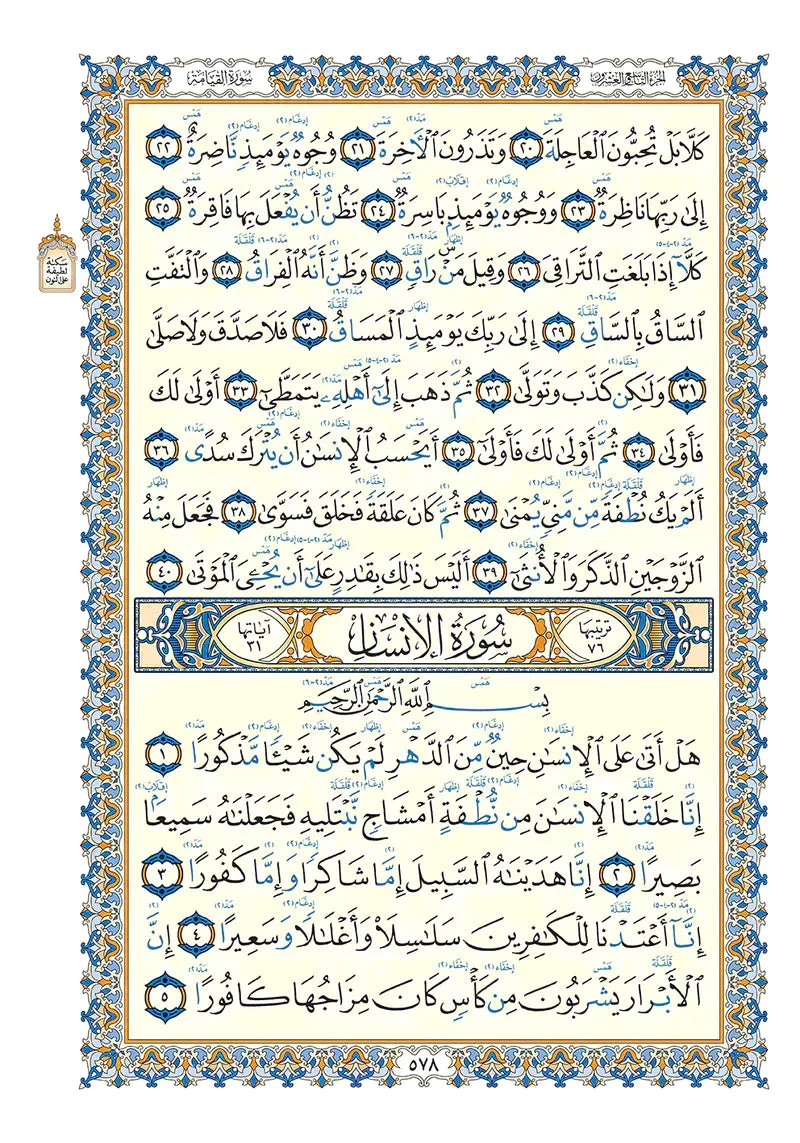 - ✓ تلوين واضح لأحكام التجويد الأساسية