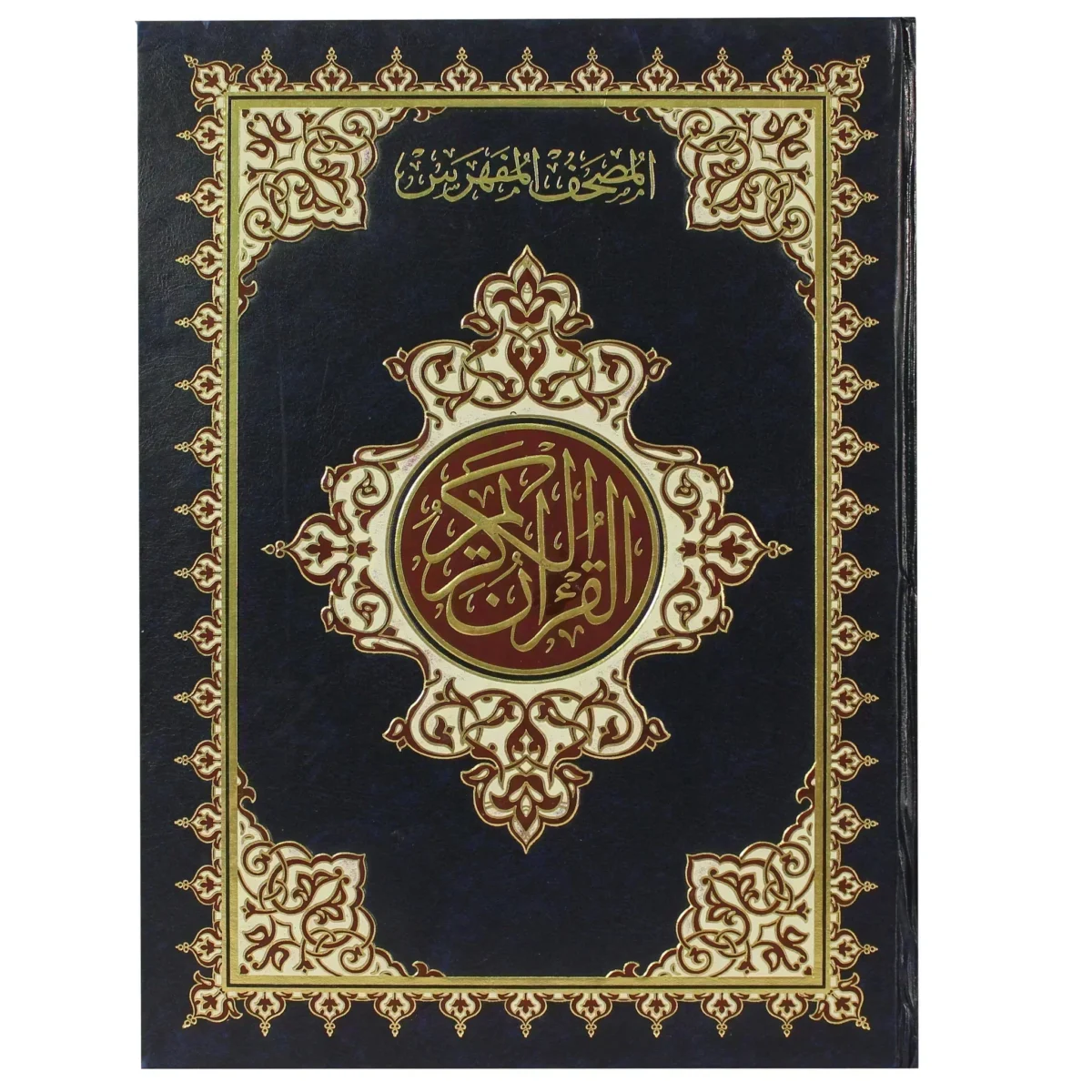 مصحف جوامعي مفهرس بالرسم العثماني ورق أبيض ٤ لون تم اخراج هذا المصحف بشكل أنيق وجديد حيث جاء الغلاف بثلاثة ألوان متناغمة مع اللون الذهبي وجاءت حروف الآيات بحجم كبير ومناسب وواضحة للقراءة في كل الحالات ومايتميز به هذا المصحف هو الفهرسة الجانبية للسور التي ظهرت على يسار الصفحة طريقة مبتكرة للوصول إلى السورة المطلوبة بسهولة من خلال فهرسة جانبية ظاهرة على طرف المصحف المصحف المفهرس، مفهرس بأسماء السور ، الجوامعي: 25 * 35