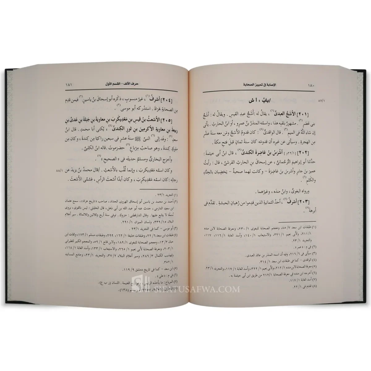 “Al-Isabah fi Tamyiz al-Sahabah” by Ibn Hajar al-Asqalani is one of the largest and most comprehensive works dedicated to the biographies of the Sahabah (Companions of the Prophet Muhammad, peace be upon him). The author compiled over twelve thousand biographies, incorporating earlier works by other scholars, and providing brief summaries of each Companion’s life, including their interactions with the Prophet Muhammad – peace be upon him.