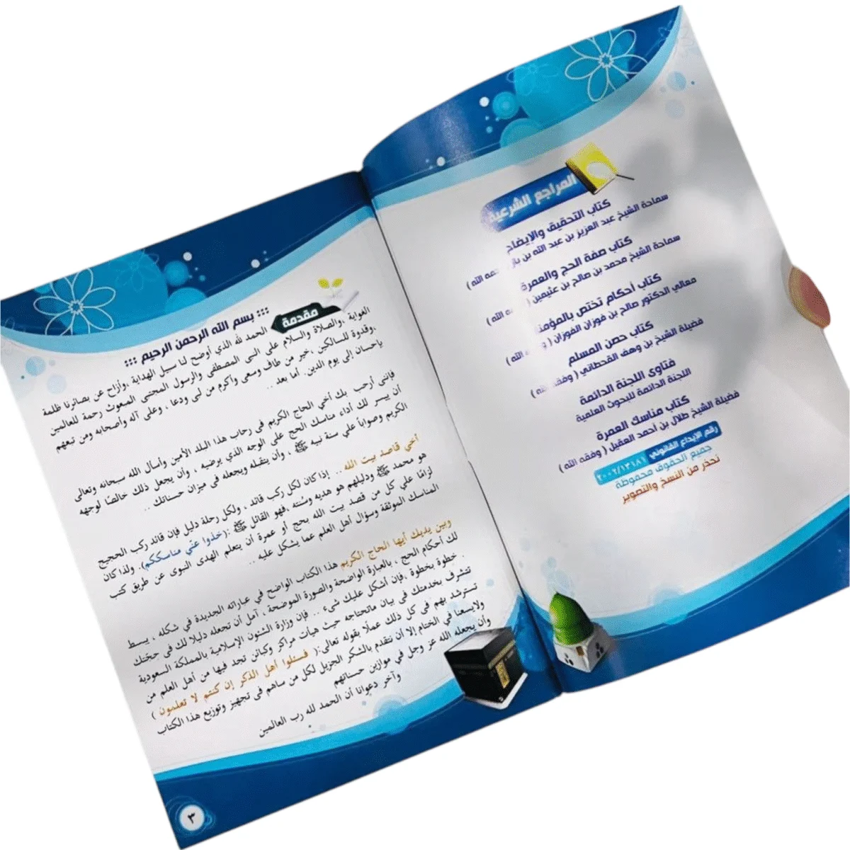 س: هل يناسب من لا يجيد القراءة جيداً؟ ج: نعم، الصور كافية لفهم الخطوات الأساسية. التصميم بسيط والخط كبير. أنصح به لكل حاج لأول مرة.