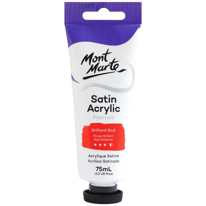 Mont Marte Satin Acrylic Paint 75ml Tube – Brilliant Red