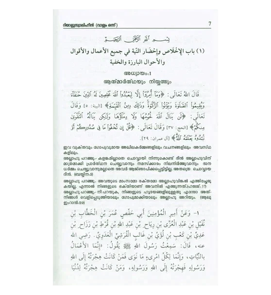 ആധികാരിക ഹദീസുകളും വളരെ പ്രശസ്തമായ ഉപയോഗപ്രദവുമായ കമ്പൈലുചെയ്യൽ. ബുഖാരി, മുസ്ലിം, ദാവൂദ് സഈദി, എന്ന അതില് ഇബ്നുമാജ: ഇസ്ലാമിക വിശ്വാസം ധാർമിക നടത്ത എല്ലാ തലങ്ങളിലും മൂടുകയും ആറ് പ്രധാന ശേഖരങ്ങളിൽ നിന്ന് ഏകദേശം 2000 ഹദീസ് തിരഞ്ഞെടുക്കുന്നത്. ഇത് ഒരു നല്ല ഹദീസ് ധര്മത്തിന്റെ ദിനേനയുള്ള റീഡർ ആയി. വിഷയങ്ങൾ വൈവിധ്യമേറിയ: ഉദ്ദേശ്യം പരമാർത്ഥതയും, അല്ലാഹുവിൻറെ മാർഗത്തിൽ തുകയിൽ നോമ്പ് നിയമങ്ങൾ, അറിയാൻ, ശവസംസ്കാരം എന്നിവര് QuranRiyadh ഞങ്ങളെ Salihen 372 അധ്യായങ്ങളും 19 വിഭാഗങ്ങളിൽ 2000 ahadiths എന്നിവര് സംരക്ഷിക്കുന്നതിനാണ്: സദാചാരം പുസ്തകം – ഉറക്കം എന്നിങ്ങനെ മര്യാദകൾ വേഷവിധാനത്തിൽ -ബിസിനസ്സിനായുള്ള ഗ്രന്ഥം, കിടന്ന ഇരിക്കുന്നതും, etc.- ആശംസകൾ പുസ്തകം – – രോഗികളെ സന്ദർശിക്കുന്നത് പുസ്തകം – യാത്ര മര്യാദകൾ പുസ്തകം – ശ്രേഷ്ഠത പുസ്തകം തിന്നുന്ന മര്യാദകൾ കുറിച്ച് പുസ്തകം അല്ലാഹുവിന് സ്തുതി നന്ദിയും ഗ്രന്ഥം – – – നാടാക്കുകയും പുസ്തകം – ഹജ്ജ് പുസ്തകം – ജിഹാദ് പുസ്തകം – അറിവ് പുസ്തകം നബി (സ) യുടെ അബൂബകറിനെ അല്ലാഹു പ്രാർത്ഥിക്കുവാനായി പുസ്തകം – ഗ്രന്ഥം ദു’അ പുസ്തകം (പ്രാര്ത്ഥനകള്) – – നിരോധിത പ്രവർത്തനങ്ങൾ പുസ്തകം – പ്രധാന മൂല്യങ്ങൾ പലവക നൈസാബുരിൽ പുസ്തകം – പാപമോചനവും പുസ്തകം അല്ലാഹുവിന്റെ സ്മരണയെ.