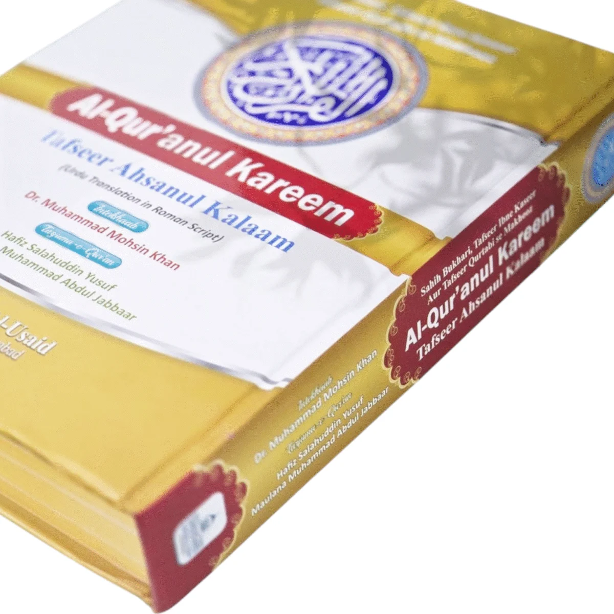 Tafseer Ahsanul Kalaam (Urdu Translation in Roman Script) – Roman Urdu تفسير أحسن الكلام (الترجمة الأردية بالنص الروماني) – الرومانية الأردية تفسیر احسن الکلام (رومن اسکرپٹ میں اردو ترجمہ) – رومن اردو This Tafseer offers a comprehensive explanation of the Quran, now available in Roman script for those who may not read Urdu script but wish to understand the Quran’s message. Tafseer Ahsanul Bayan is a widely recognized and respected work, providing a detailed interpretation in easy-to-understand language. The Roman script makes this version accessible to a broader audience, helping readers understand the Quran’s meaning without needing proficiency in Arabic or Urdu script. Features: Urdu translation in Roman script Detailed commentary and explanation of Quranic verses Ideal for non-Urdu script readers Authentic and widely accepted Tafseer Size: 19x25x4 cm Translated by: Hafiz Salahuddin Yusuf, Moulana Muhammad Abdul Jabbaar Intikhab: Dr. Muhammad Mohsin Khan Transliteration: Abu Arqam Tarique Salafi Publisher: Maktaba Al-Usaid